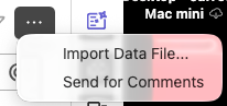 In the comments window click the three dots in the top right. Then click import data file.
